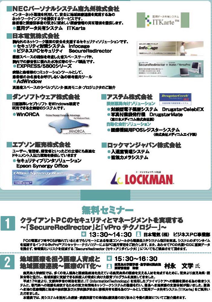 2008年2月2日 かごしま医療セミナー&システム展示会で医用データ共有システムITKarteが紹介されました。